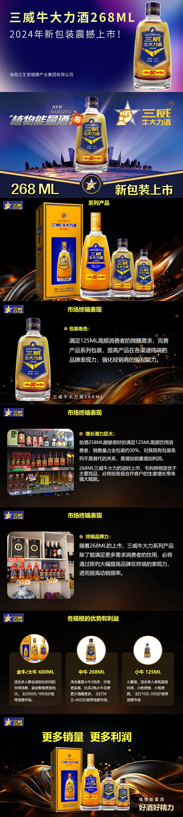 三威牛大酒268ML新包装震撼上市!!!!更多销量,,更多利润。。海南尊龙时凯出品·植物能量酒·好酒好精力。。