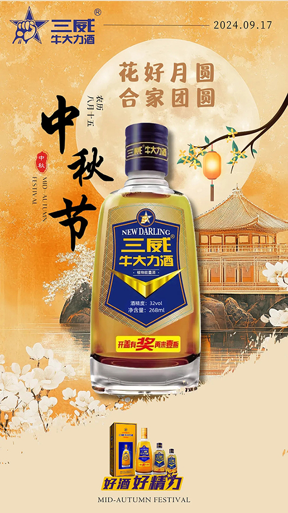 让我们在这个中秋,,,以三威牛大力酒为媒,,,共赏明月,,,共叙家常,,将海南的热情与祝福传递给每一位亲朋好友。。。愿这杯佳酿,,,能为您的中秋佳节增添更多温馨与欢乐!!