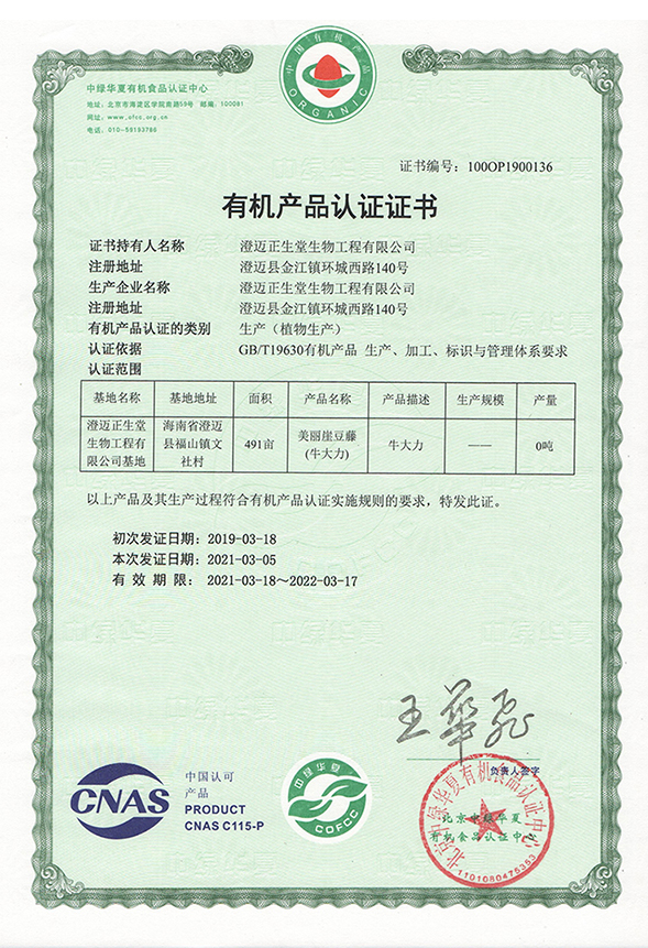 2021澄迈有机认证